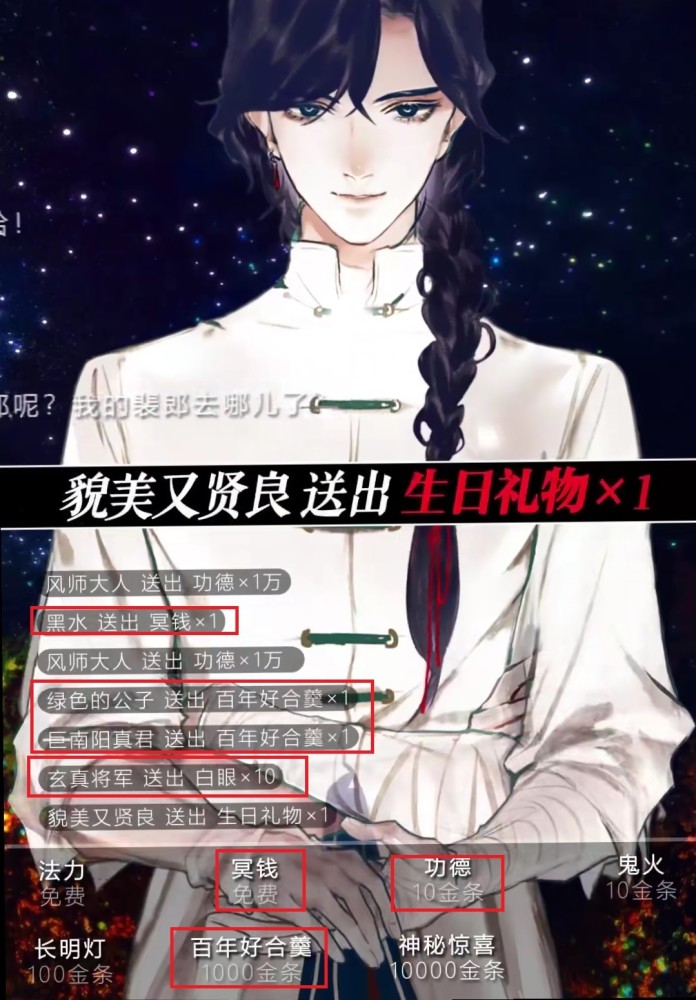 自然是因为黑水的“小号”极多!眼线遍布三界。维持众多分身,自然会消耗大量法力,再加上生前饿伤了胃,所以黑水无时无刻不在吃东西。所以有理由怀疑,黑水身为风光的绝境鬼王,为什么还是个穷光蛋的原因是因为吃得多!我们仔细观察一下黑水送给花城的打赏可以发现,这人送出的居然是免费的冥钱!由此可见,这人为了省饭钱,抠门到了什么地步。