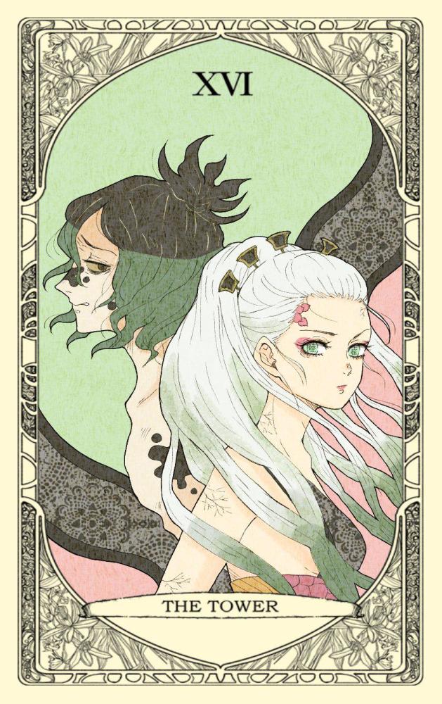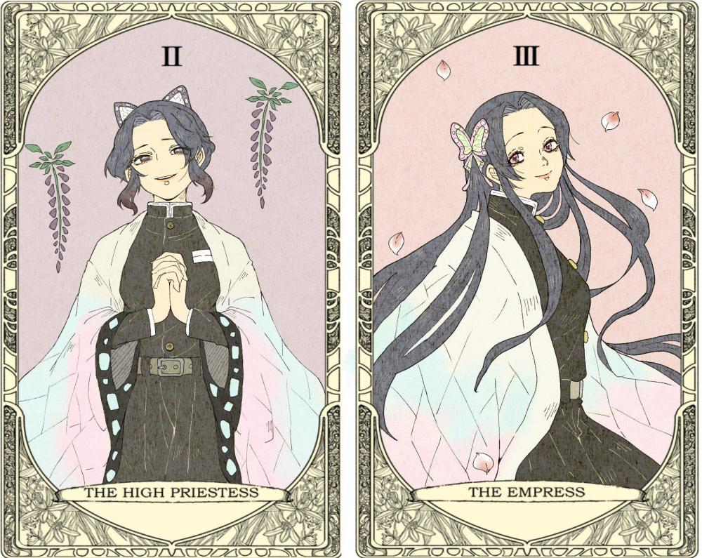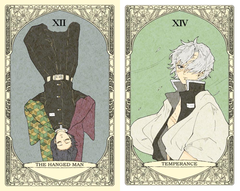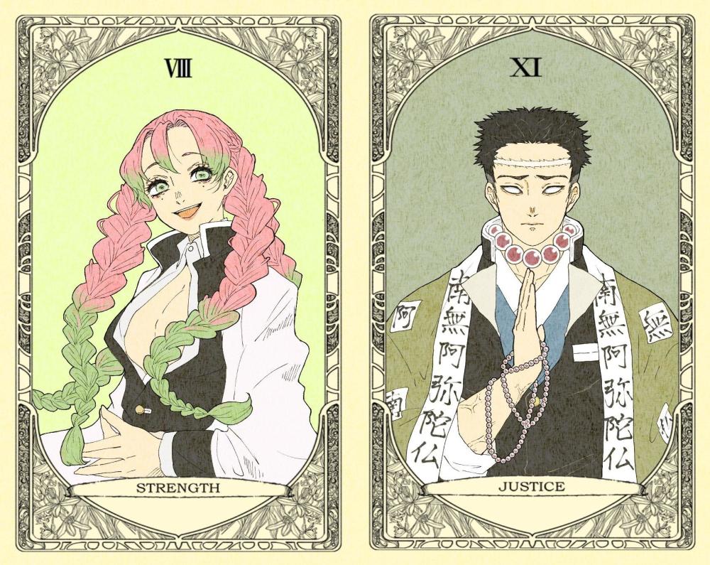 而外网有位有才华的画师(@蜂鳥とめ),把《鬼灭之刃》与塔罗牌结合在一起,《鬼灭》众人都被封印在塔罗牌里,这画面可真是好看!