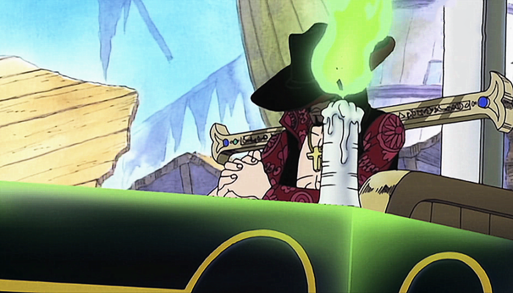 剧情中鹰眼是出场最早的一位七武海,当年路飞刚来到东海的海上餐厅时遇到了被击溃的克利克海贼团,这支拥有五千余众五十余艘舰船的大型海贼团,本是雄心勃勃前往伟大航路,但出海不到七天就遇到了鹰眼,五十艘舰船在片刻间被巨大的斩击粉碎,这让我们第一次见识到了来自世界第一剑豪的威力。鹰眼立于剑士的顶峰,强大的剑术足以支撑他挑战任何强者,四皇也不是没有可能。