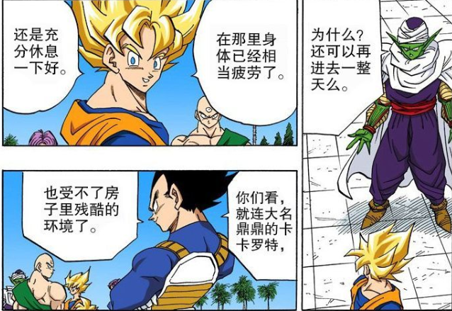 在精神时光屋的修炼也是如此,外面过上一天相当于时光屋里过上一年,一年的修炼即便是悟空也会产生疲惫,所以他会选择提前离开,好让自己的来适应新的力量。而悟饭的修炼也按照这样的思想进行传授,会在大战前用十天时间来好好休息,完全不想修炼的事。