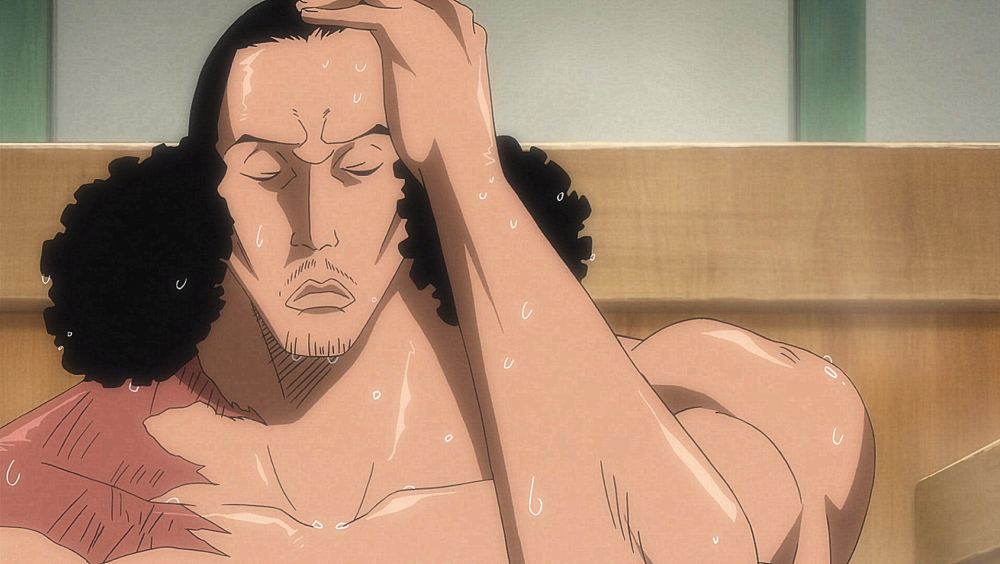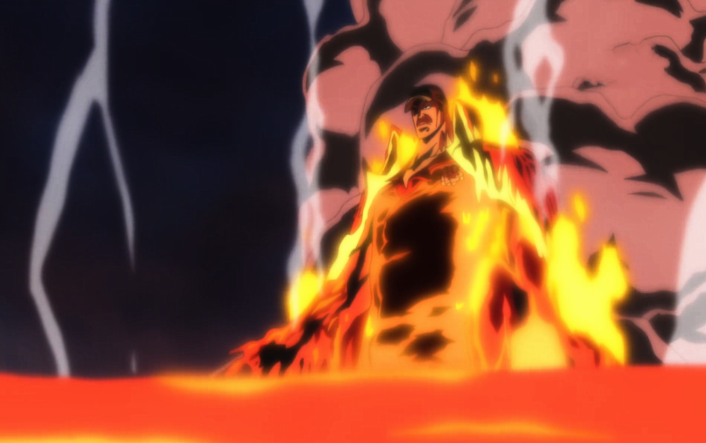 庞克哈萨德篇七武海多弗朗明哥追杀罗等人来到了海军中将斯摩格驻守的G5分部,在得知斯摩格知道自己的秘密后恼羞成怒的明哥决定将斯摩格灭口,确实以明哥的实力对战海军中将的话没有太大压力,几招过后斯摩格就被明哥压制住了,但正当明哥准备动手时背后突然冒出了一股冷气,大将青雉强大的气场瞬间让明哥不敢动