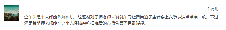 就正如下面这位网友所说:“这个年头是个人都会跌落神坛,只希望押井守老师能够在光怪陆离吃相难看的市场背景下,另辟出蹊径吧”---