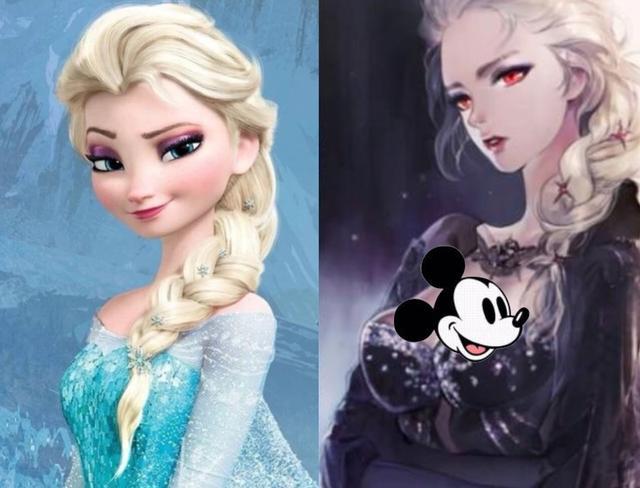 第一个黑化的是《冰雪奇缘》中的艾莎女王,在动画中艾莎虽然也曾经被人类误会是邪恶的一方,但她自始至终都没有伤害过他们,即便遭受再多的非议也没有真正黑化过。如果艾莎在被误解后黑化会是什么样子呢?原来的蓝色长裙变成了黑色,眼睛的颜色也变成了红色,那种不屑一顾的眼神真的让我爱了爱了。