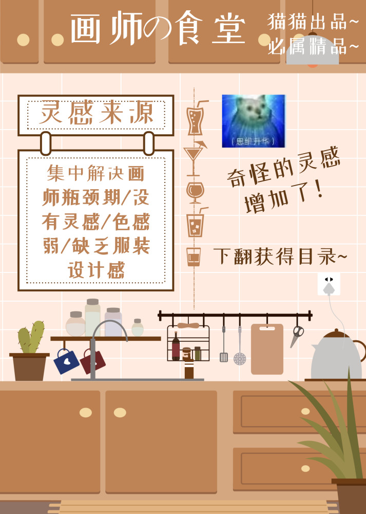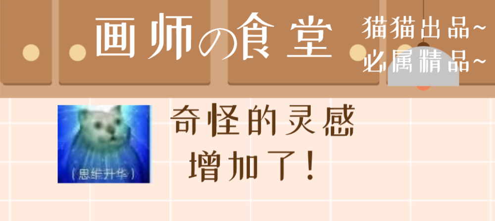 而画师食堂——集中为画师提供灵感的食堂,猫猫作为食堂大妈,一定会多多投喂大家哒(呸)~欢迎来到画师食堂呀~喵~【奇怪的灵感增加了——】