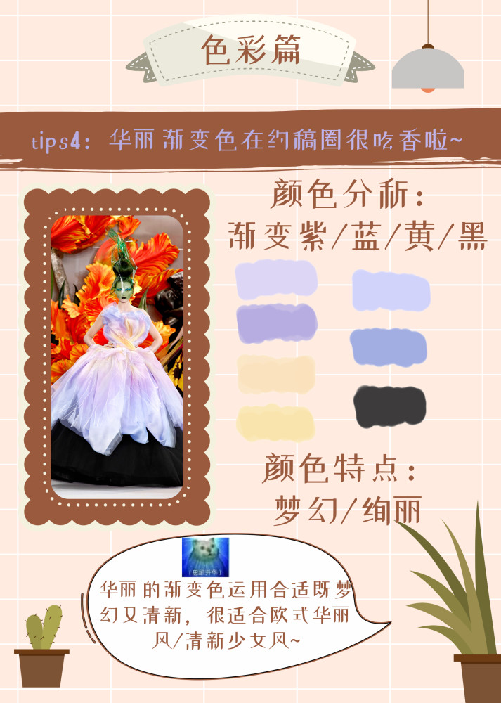 对于本期内容,猫猫想说,有些高定走秀对色彩的把握是十分恰当和优秀的,十分值得借鉴,看这些内容时可以联系自己画画时的色调,然后进行择优,后期猫猫会为大家推荐更多更优秀的食堂菜品~请持续关注呀,谢谢你们观看本期内容~(/▽\)