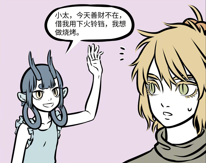 因为小太在观音家里的缘故,龙女有次拜托小太,只见龙女对小太说:“今天善财不再,借我用下火铃铛,我想做烧烤。”龙女是有多爱吃烧烤呀,而且平常看来都是用红孩儿的三昧真火做烧烤,真是厉害了。小太听到龙女叫自己于是回过头。