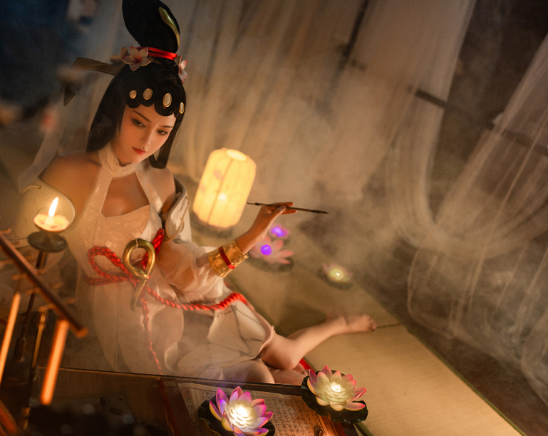 大乔白蛇皮肤的出场特效就是一出“奇迹暖暖”换装,其实要我说,变身前的大乔,一身白裙,青春又可爱感觉比变身后的还要好看呢?变身前的大乔,coser还原的也非常到位呢!有体现出那种清纯的气质。