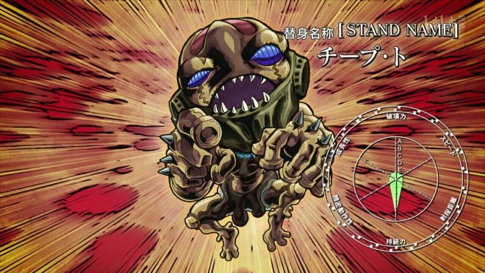 廉价把戏,除了不停BB就一无是处的替身,基本上只要是个替身都能打赢他,虽然廉价把戏的战斗力不行,但他的特殊能力十分强大,只要成为他的替身使者,注定就只有死亡的命运。