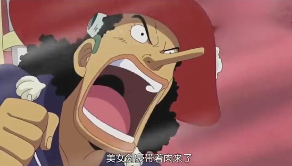 在草帽海贼团三大战力,路飞、山治、索隆都被催眠的时候,乌索普喊了这么一句,一句话中美女吸引色狼山治,肉吸引了饿死鬼投胎的路飞,剑士吸引了争强好胜的索隆,三个人的精神马上都恢复了,不愧是乌索普大神,真tm机智!