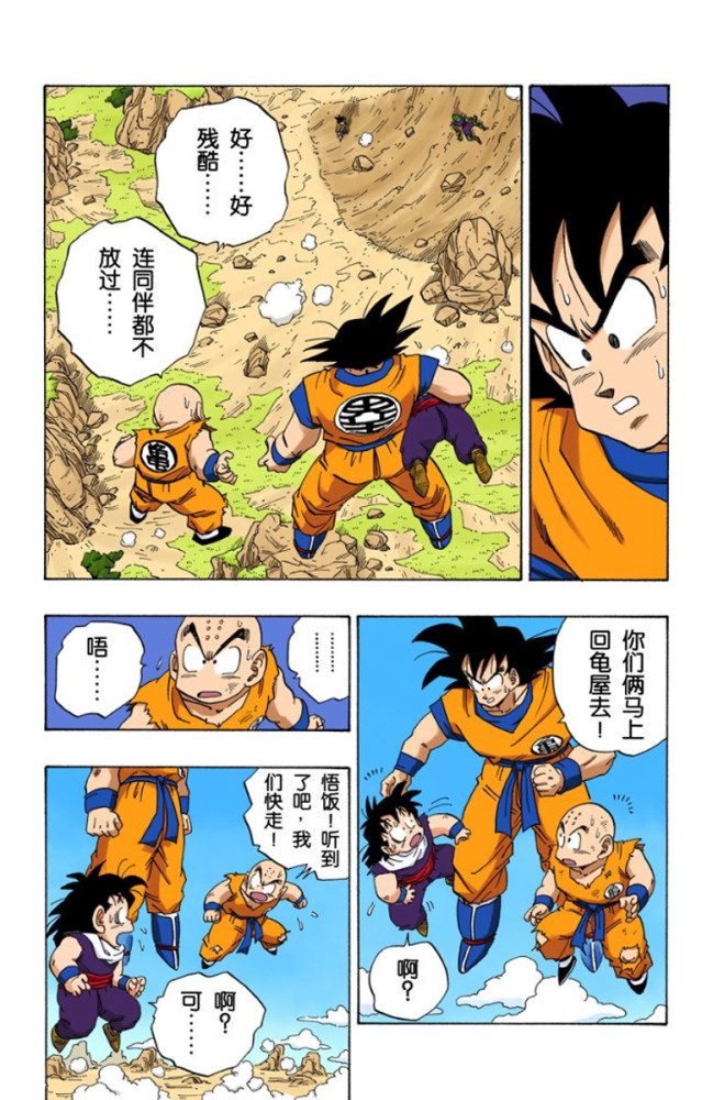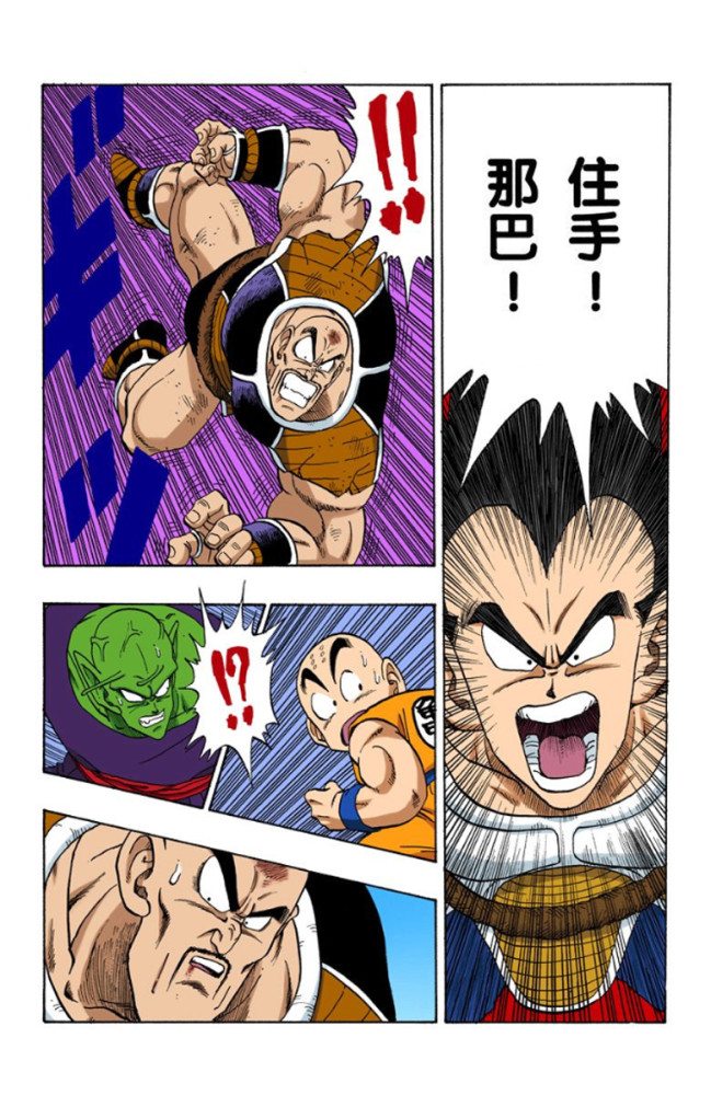 要点分析:孙悟空在看到贝吉塔杀害了同伴的时候感到吃惊,这也暗示了孙悟空最后不会杀死贝吉塔,他只是想和贝吉塔切磋武艺而已。而选择新的作战地点是为了保护同伴的尸体,其实这个时候鸟山明就已经想好那美克星的布局了。
