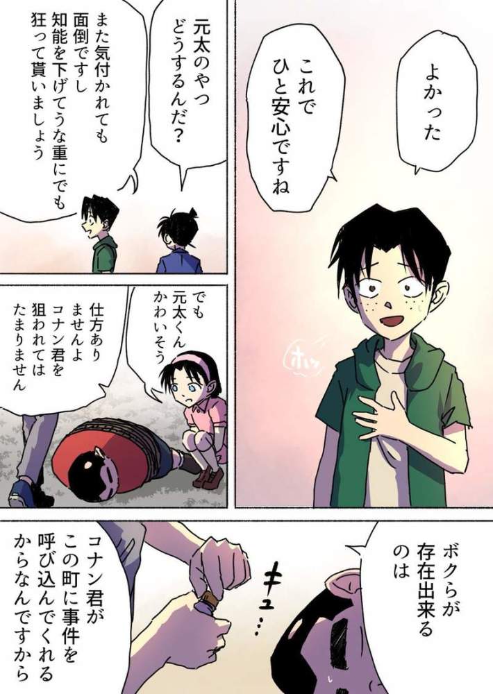 陪伴大家成长的名侦探柯南,虽然至今还没有迈向完结,但已经展现出各方各派的人物角色,随着剧情的推进,关于柯南的结局一直是粉丝讨论的重点,甚至不少人展开各种天马行空的想像剧情,比方说阿笠博士才是幕后黑手等等,总之身边的人都有可能是卧底变成大魔王,之前2月底的时候网上有网友分享这方面的改编作品,由推主“唐扬げの精(闇堕ち编 @karaage_g2”所绘制的《领悟了名侦探柯南世界观的元太》,有趣的设定引起了不少网友的注意与讨论,全新的着眼点跟完全腹黑的黑暗剧情,让不少人觉得本篇真要这么演就好了,我知道很多朋友已经看过翻译的版本,这边我就是觉得这漫画很有意思所以分享上来给更多的小伙伴