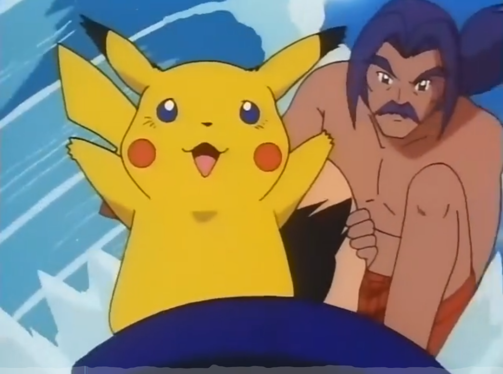 后来它和敏川特一起征服了巨浪大星期二,普通的皮卡丘并不会冲浪,只有配信的才会。