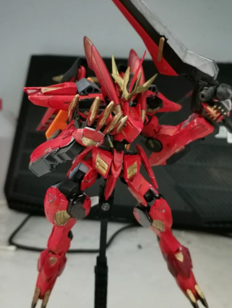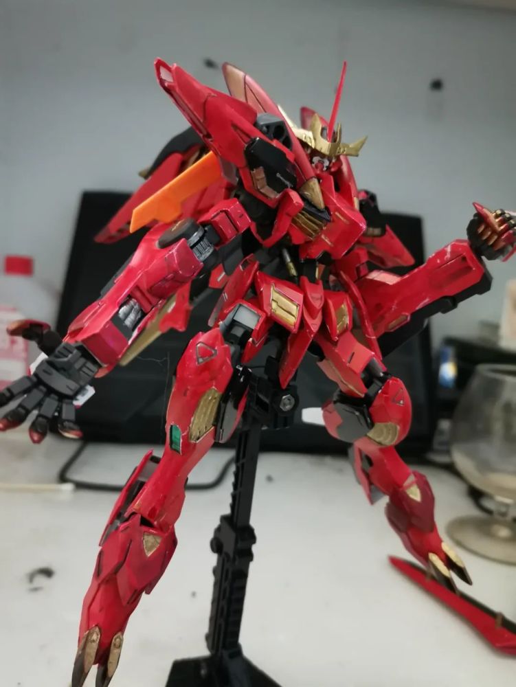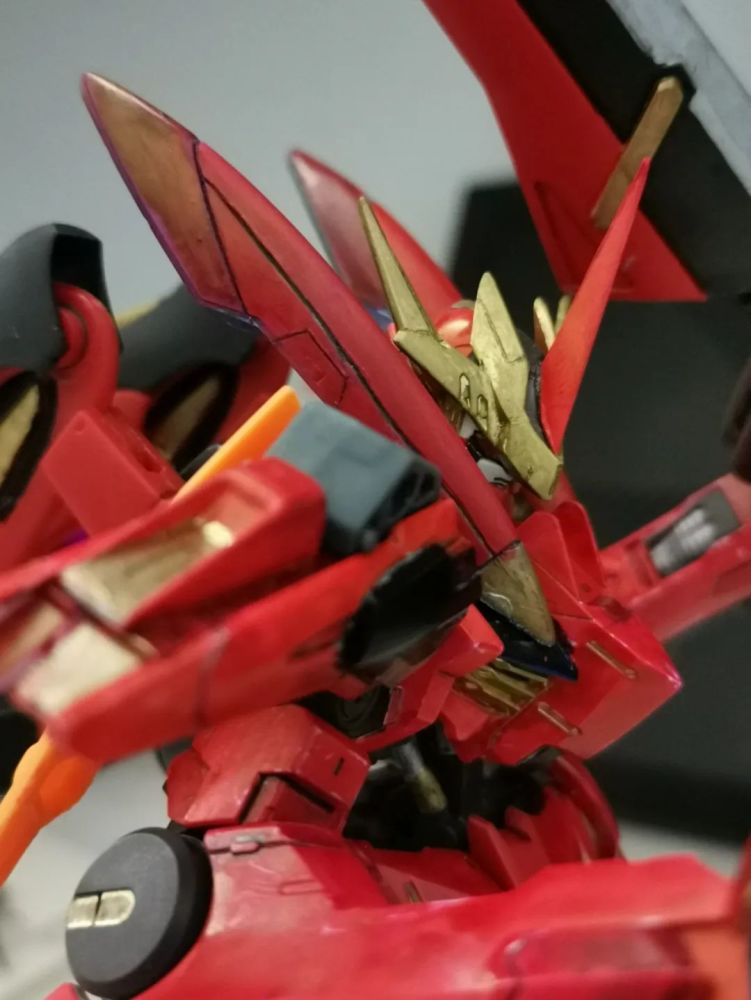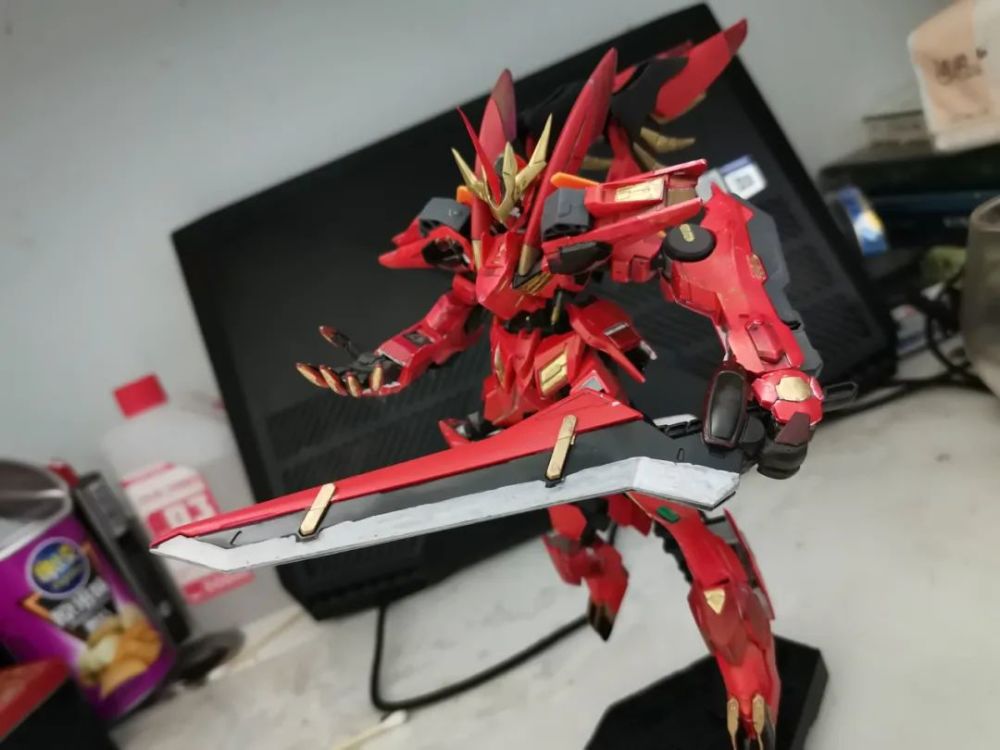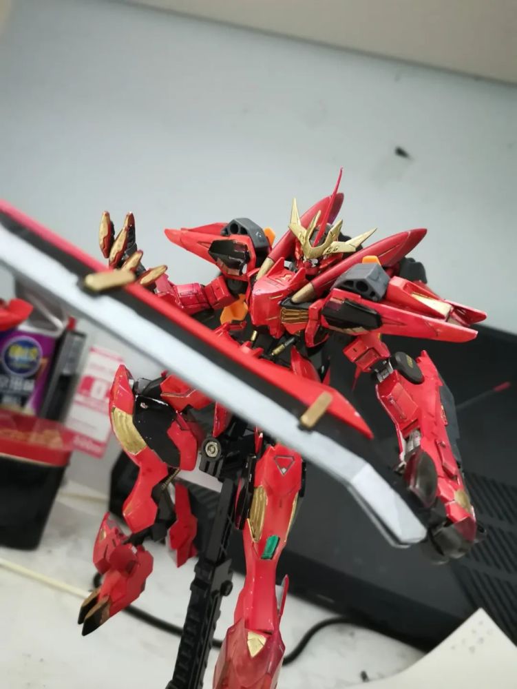 由于小区封闭规定,到今天为止在家隔离一个来月了,就尝试了一下魔改,算是我第一次接触魔改和上色。机体的命名为巴巴托斯 红龙,用了四个模型,万代巴巴托斯,高高的命运和主天使,座天使二型。由于还没买到,全程笔涂,也算试水,但效果不太好。虽说现在随着公众号教程的一次次发布,喷漆已经略有提升,——至少补土和基本动作已经会用了,但只会用预调漆——但那个时候还真是对上色技术一窍不通。没打补土,剐蹭掉色严重,后期反复补色留下了明显笔触,而金色更是存在氧化,以及高高留缝明显。不过还是希望能让大佬看看自己的魔改造型设计,表扬也好,批评也好,希望能得到评价,模型也是艺术,得到评价大概是每个做艺术作品的人的渴望吧!不知道能不能进新手村呢。最后感慨一下,歪门邪道,果然P图才是模型制作的终极技能……(最近P图随便玩玩,作法和前两天教程上讲的“视觉骗术”不谋而合)下面是模型作品和P图