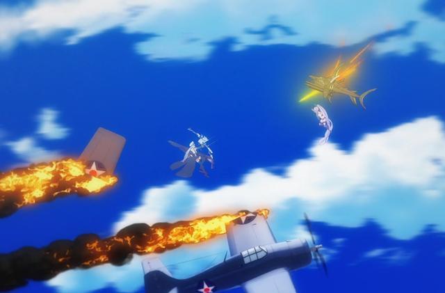 所以很有趣的剧情出现了,其他舰娘在原地愣着,企业坐飞机直接去拦截导弹,话说这导弹速度还真的挺慢的,虽然追不上但没拉开太多的距离。