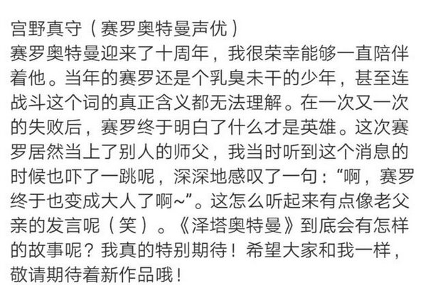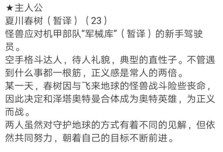 其他的情报圆谷还没有公布,其实我最想知道女主是谁?女主的造型怎么样?我猜肯定有许多小伙伴也想知道吧,等有了新的情报会第一时间分享的,我是闪亮亮的小星星喜欢我的话就请关注我吧,再见。