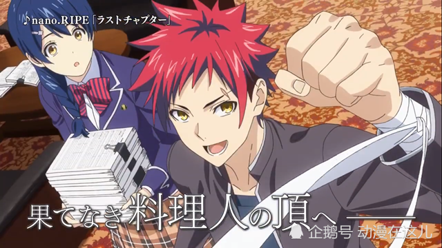 《食戟之灵》也是漫改动画,原作已经完结,已经播出过四季。第四季结尾,反叛者联盟团队赢得了联队食戟FINAL BOUT的胜利,新任十杰也将决定。但事件没有结束,一波刚平,一波再起。看这动漫容易饿。