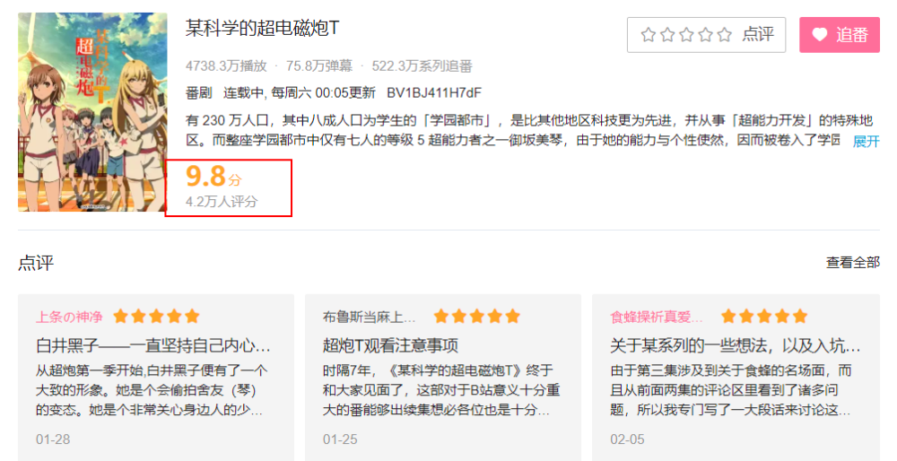 B站的评分系统并不是第一时间上线的,这就导致很多曾经的粉丝评价全部都是5星,真正对一部动漫作品给出差评的人很少。