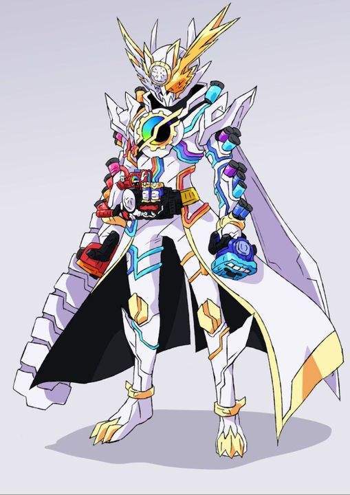 当然在新十年的大杂烩形态就更多了,比如说四仔的宇宙形态,ghost的感恩魂,build的天才形态,时王的崇皇时王,盖茨的王权盖茨等等。因此这里我们就简单介绍几个,就来说最有故事的天才形态和王权盖茨吧。天才形态想必大家都不会陌生,作为战兔的tv最强形态,在设定方面是相当之高的。融合了60个瓶子的能力,但在剧中因为编剧的迫害以及经费问题并没有发挥真正的力量,因此被不少粉丝诟病,真的是无敌的天才形态又一次倒下了,在剧场版好不容易爆发一次,但终究还是不敌假面骑士blood,最终还是火星王妃的力量让两人融合成为金兔银龙才解决了战斗。