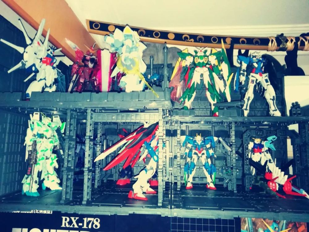 作者自述:从初中开始正式玩高达(虽然之前在文庙买过好多国产sd三国),到现在三年多了,主爱hg,应为懒,大多都是直做 ,而且堆积的太多所以想要拼个机巢,给他们安个家。