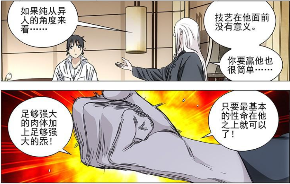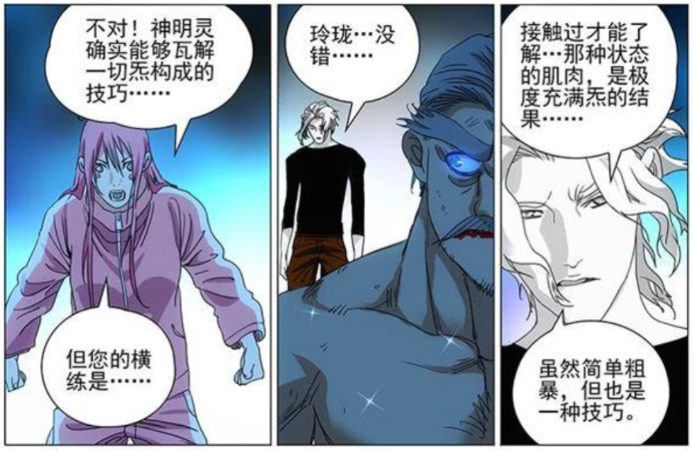 而元婴第二次占据张楚岚身体时,同样是张楚岚遇到了生命危险,六子天生的爆炁直接被元婴化解。这段剧情中有一个细节,漫画中的人物是不能从张楚岚的外貌来辨别出其能力,柴言是被元婴控制下的张楚岚抓到手臂后才觉察到自己的横练被瞬间化解了。而这里柴言认定张楚岚的手段就是神明灵。