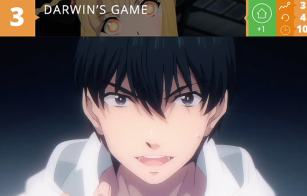 一月番里A站是真的买了一部好番,它就是《达尔文游戏》,在国外排在第三名。这部番与《杀戮都市》有点类似,主要讲游戏求生,当初老白看动画的时候,就因为故事吸引人跑去看漫画,里面不仅有异能,还存在不同的世界,是一部相当精彩刺激的动画,顺带一提男主智商很高,能排在第三名它确实有这个实力。