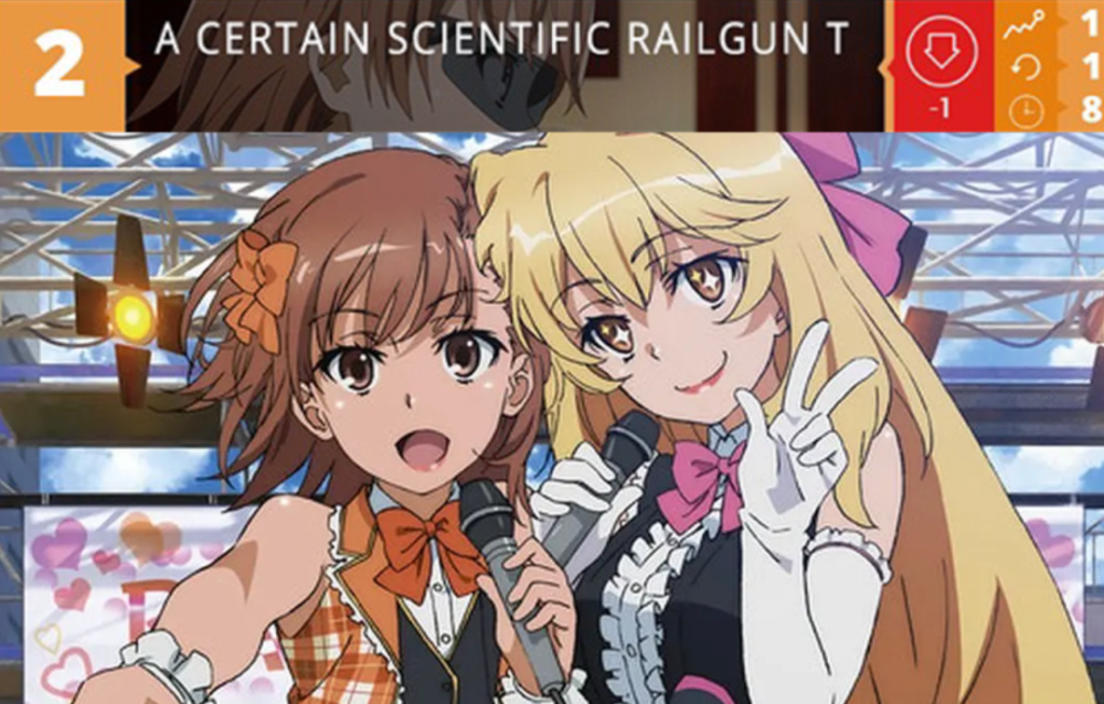 这次排在第二的是《某科学的超电磁炮T》,超炮本来就是一部大IP作品,这次JC社还算不错,没有拿超炮T献祭,但是超炮动画更新很慢,别的一月番都完结了,它才更新到第9集!从超炮T的制作播放和评分来看,排在第二倒也没什么争议,毕竟这一季食蜂操祈很上分。