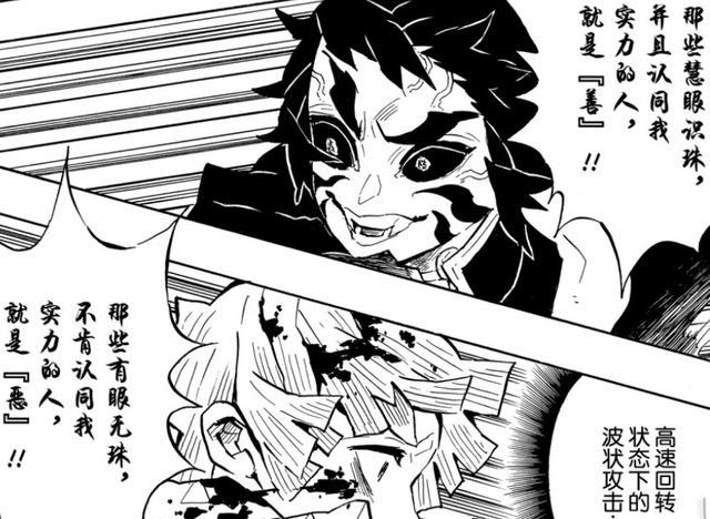 但雷人的地方在于,狯岳几乎算是在《鬼灭之刃》之中,除屑老板无惨之外,甚至于屑的程度比童磨稍高。