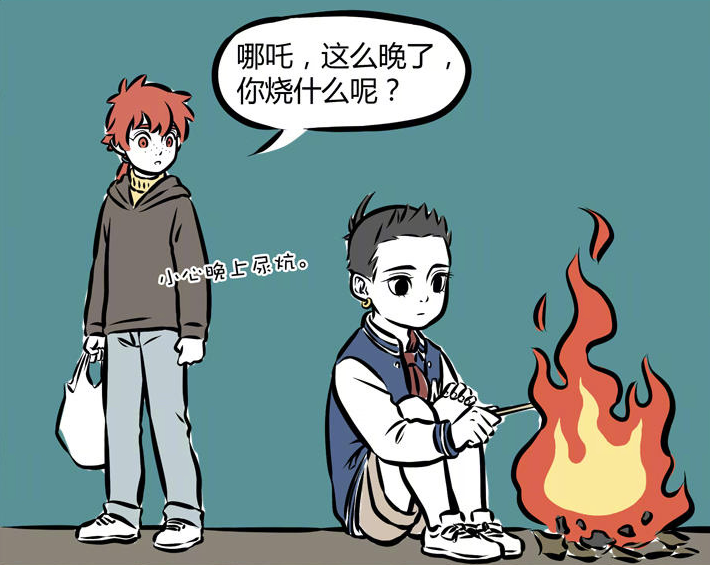 非人哉中哪吒和红孩儿的感情可谓是剪不断理还乱,毕竟曾经的红孩儿十分喜欢哪吒,如今两人却成了好朋友。但是两人关系还是十分友好的,有次哪吒一个人孤独地在玩火。红孩儿忍不住询问:“哪吒你在烧什么呢?都这么晚了。”从红孩儿的话中不难听出红孩儿还是很关心哪吒的。