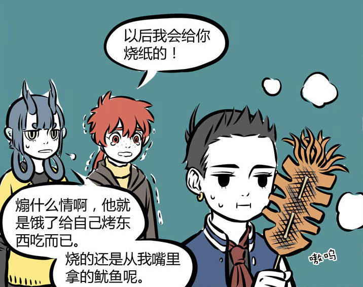 因为受到了哪吒的影响,红孩儿老泪纵横的说:“以后我会给你烧纸的。”看来红孩儿十分感动呀,毕竟哪吒的话语太煽情了。让红孩儿忍不住想去同情哪吒。就在这时一旁的龙女忍不住吐槽了:”红孩儿你傻啊?煽什么情,哪吒就是饿了再烤东西吃而已,还是从我嘴里拿的鱿鱼。”龙女都有点受不了红孩儿了,这也太容易被感动了吧?没见哪吒正吧唧吧唧的在吃鱼吗?你好好的哭什么。